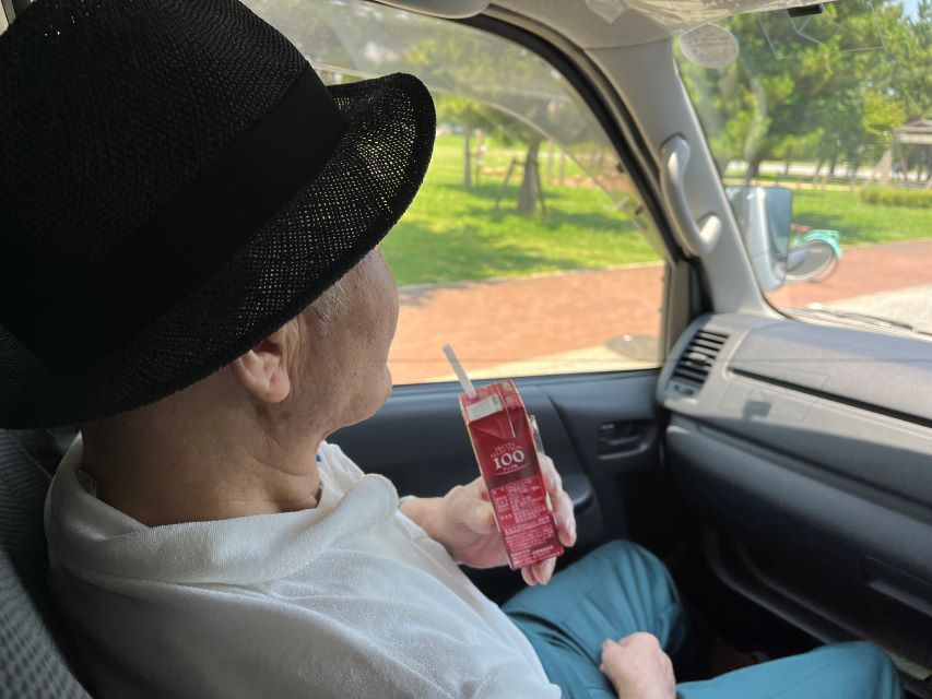 今回は猛暑だったため、邪魔にならない所に車を止め、りんごジュースを飲みながら車内から景色を楽しんでいただきました。