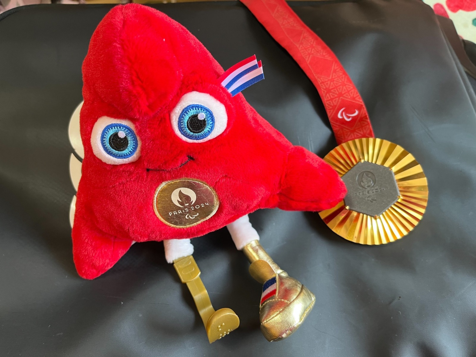倉橋さんよりパリパラリンピックマスコットの「フリージュ」のぬいぐるみとメダルを見せて下さいました。フリージュは義足をつけており、足は各メダルと同じ色をしています。