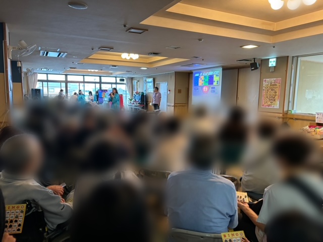 2階では和太鼓やカラオケ大会、ビンゴゲームが開催され、予想をはるかに超える満員御礼で盛り上がりを見せていました。少し窮屈な状態で申し訳ありませんでした。