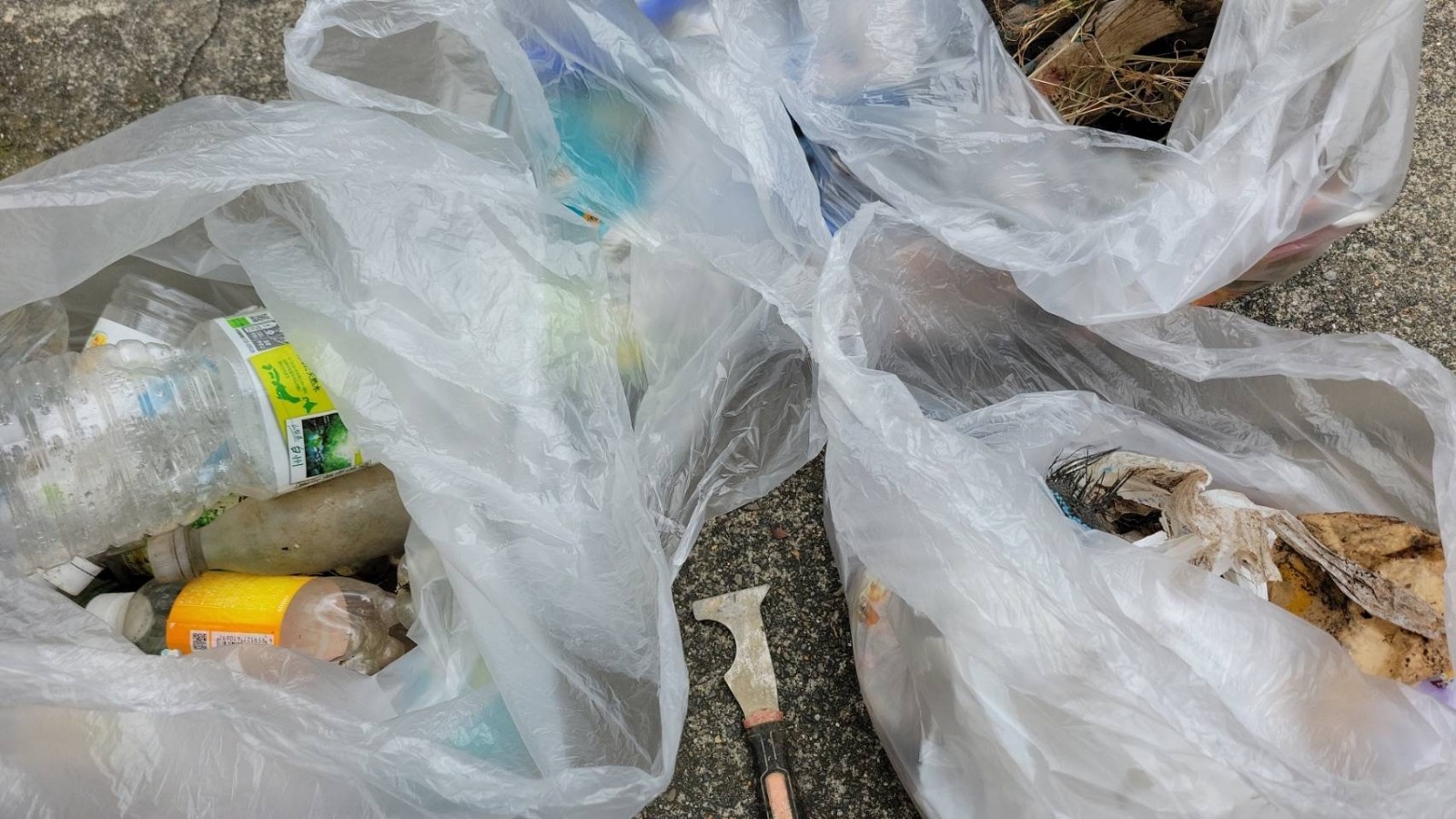 思っていた以上にゴミも集まり ペットボトルやコンビニで買って食べた後袋にいれて それごとそのまま置き去ったようなものもたくさん拾いました。