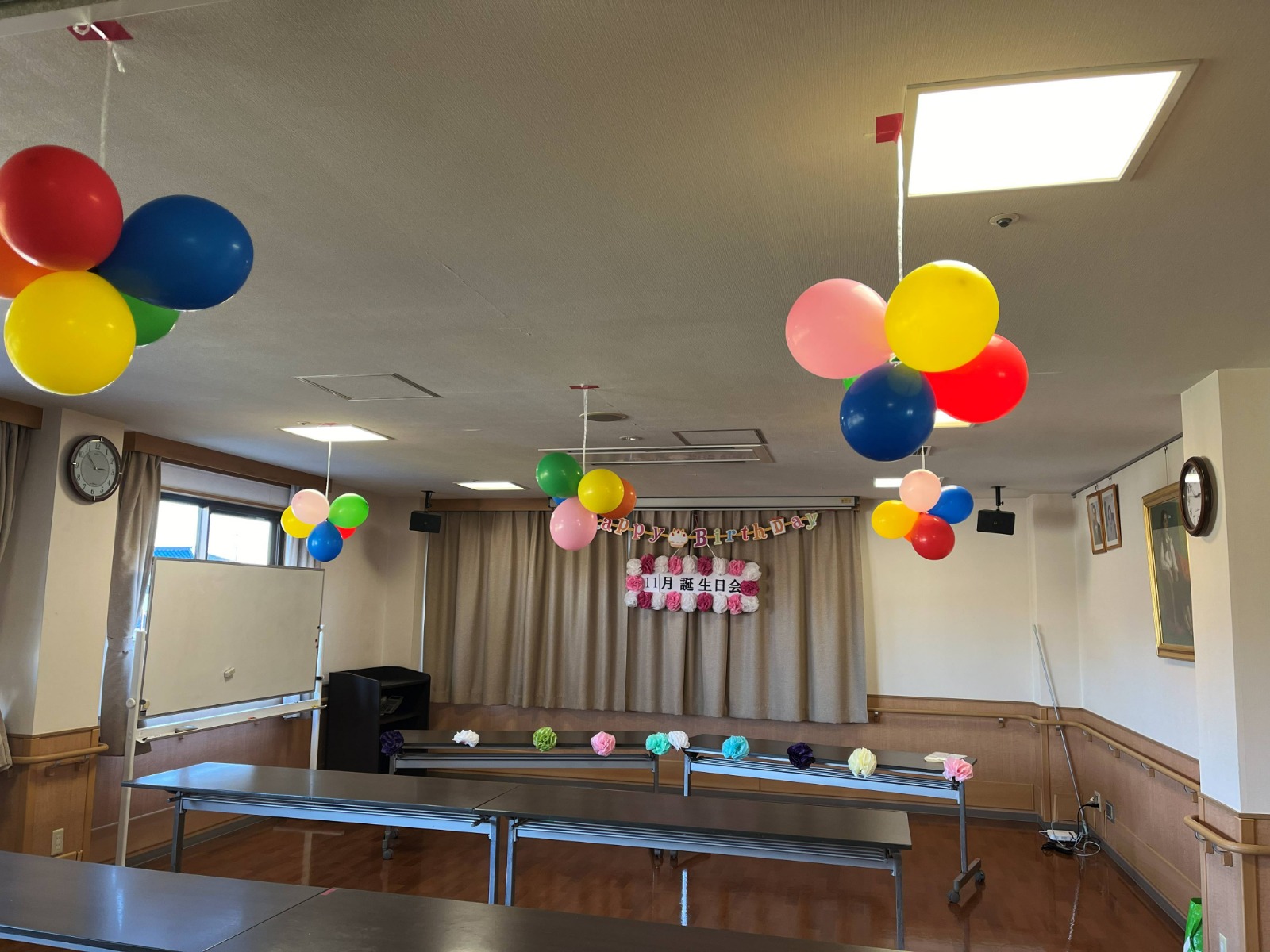 C館では、毎月その月のお誕生日の方のお祝いをささやかながら行っていますが、11月はデザートバイキングも企画していたため、一緒に行うことになりました。