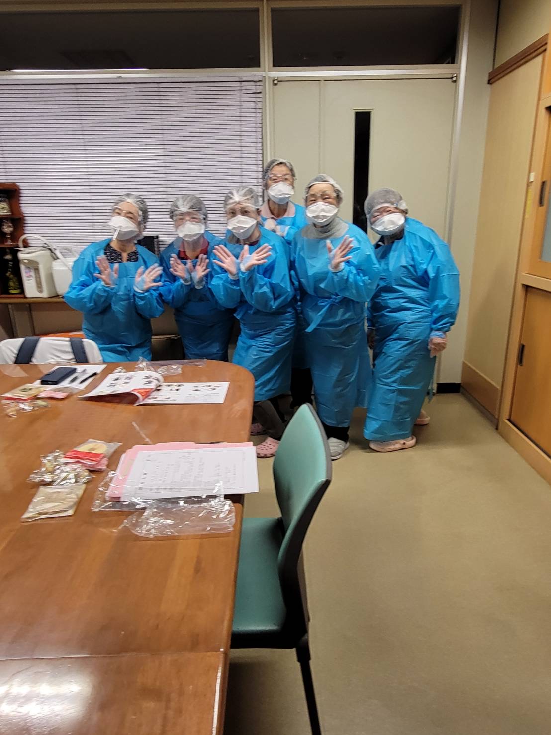 なく防護服が当たり前のように着脱できるように年に2回実施しております。