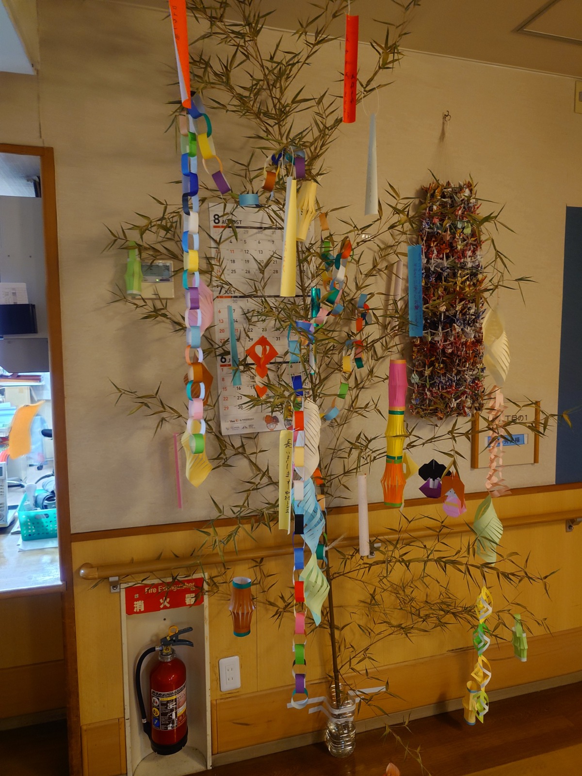 なごみの郷では、毎年、施設内に生えている竹を切って、七夕飾りをおこないました。