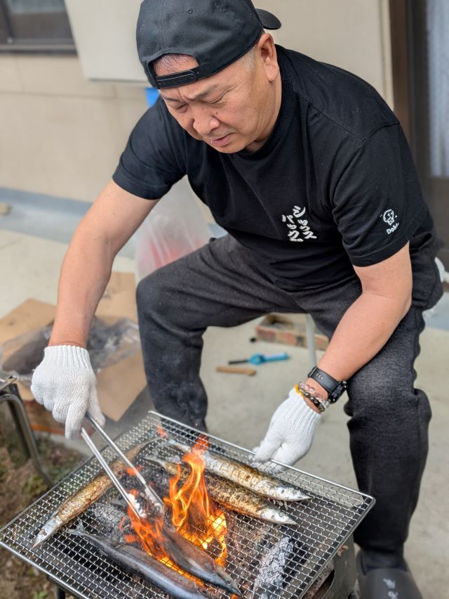 炭を起こしてくれたのはなんと名原施設長、いつもお好み焼きイベントなど一緒に参加してくれます(^^♪↓↓