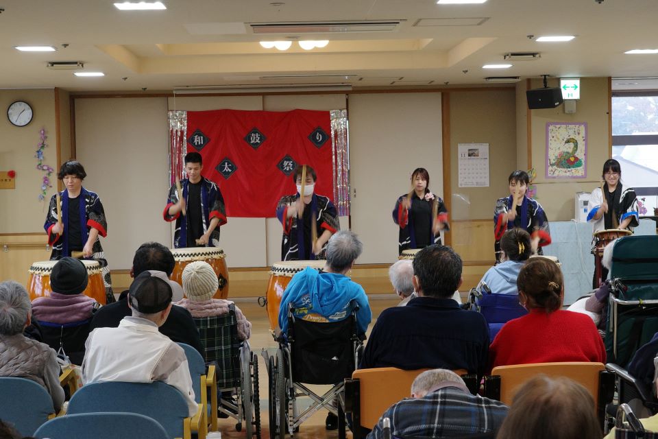 ラストの和太鼓は職員が力を合わせて迫力満点でした。