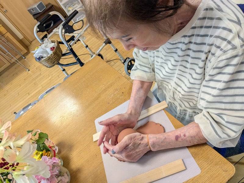 おたけの郷は、ショートステイを含むと160床と非常に大きな施設なのだが、現時点で陶芸を実施できている方は数名のみ(まだ開始したばかりなので当然だが)