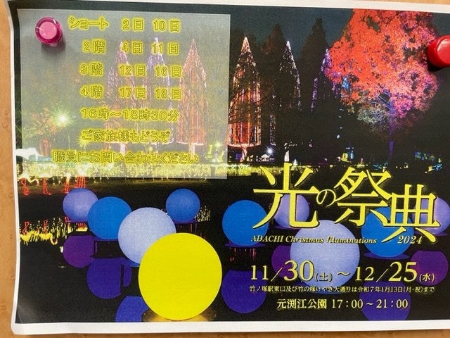 イルミネーションがとても綺麗で、毎年入居者の方々と見に行くのですが、今年はご家族の皆様からもご希望があれば是非ご一緒にと思っております!