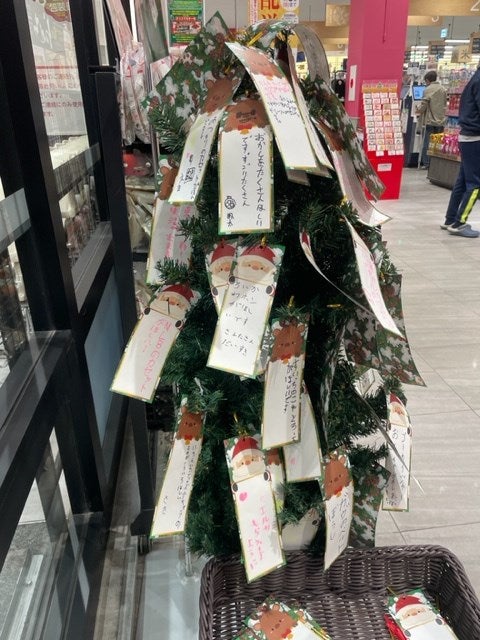 12月半ば。ふとスーパーに飾られているツリーを見ると、七夕の短冊のように子供たちの願い事がぶら下げられていました。