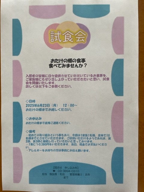 ご希望の方がいらっしゃいましたら、おたけの郷までご連絡ください!