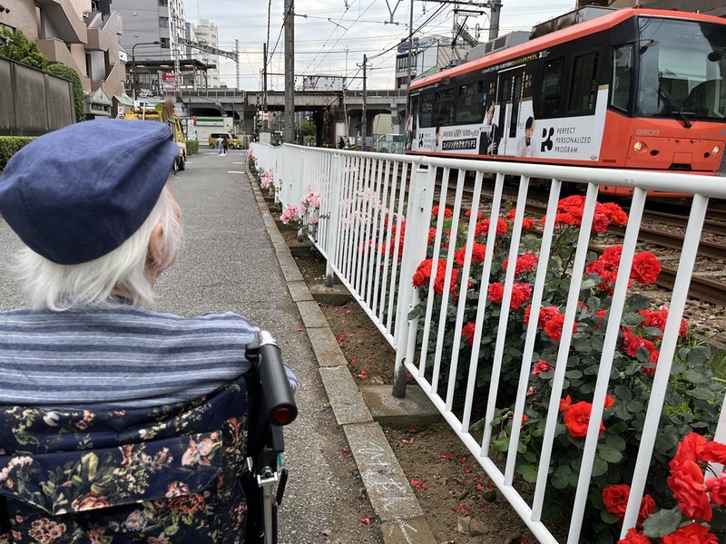 写真フォルダを眺めていたら、都電沿いにあるバラを見に行かれた方の写真があり、あの時の微笑みをふと思い出したので…