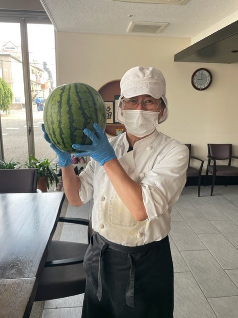 スイカは僕が「顔よりおっきいのがいい!」と相変わらずのワガママを言ったところ、厨房業者さんの方で特大のスイカを用意してくださいました(笑)
