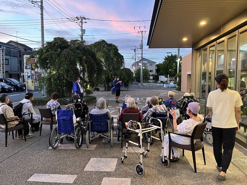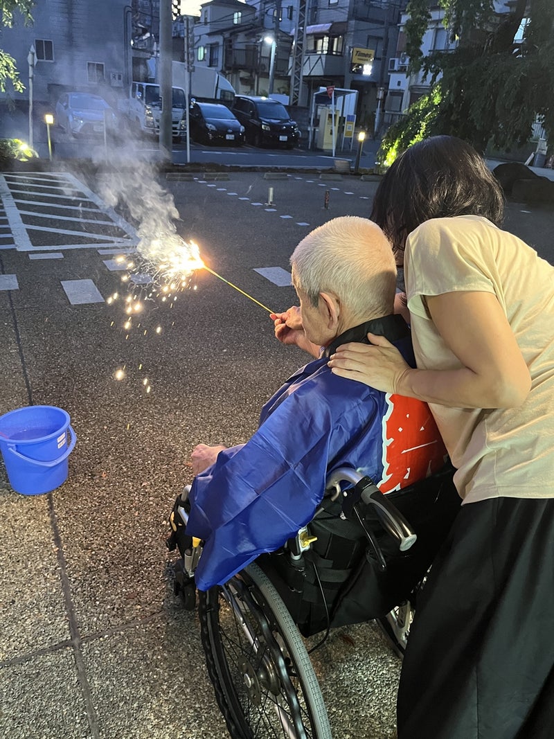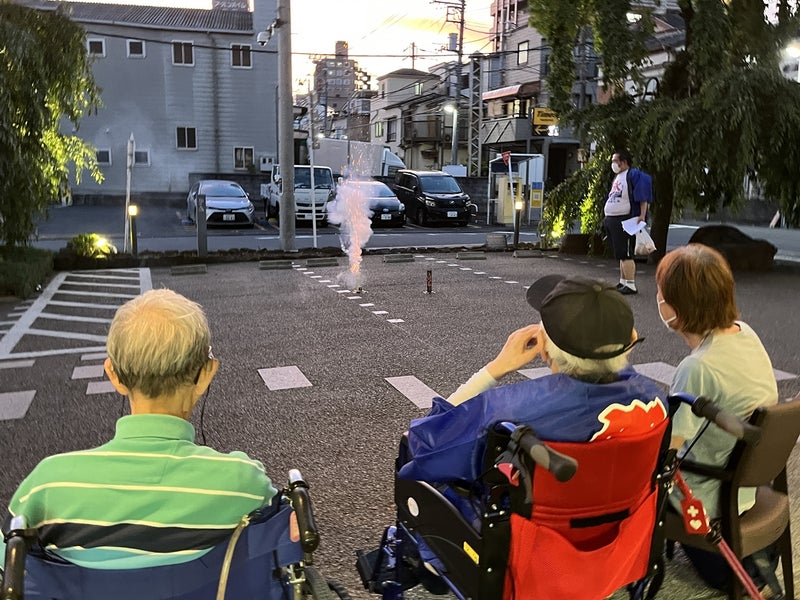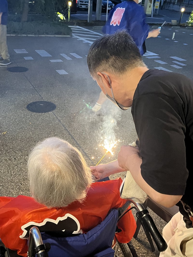 さすがに昼間に外に居続ける事は難しいのですが、涼しくなった夕方なら!という事で、ご家族もお招きし花火を行いました。