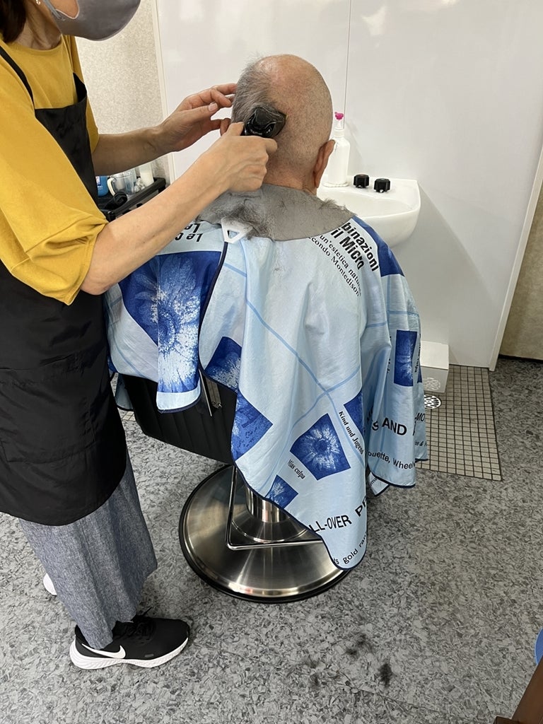 入居されてる皆様は基本的にこちらを利用し髪の毛を切ったり染めたりされるのですが、なかには「入居する前から通っていた馴染みの床屋に行って切りたい」と仰る方もいるため
