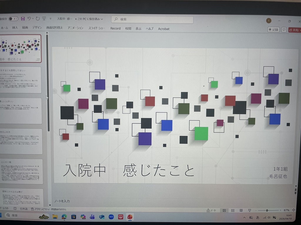 この経験・体験を入居者の皆様への支援に活かすことができるよう、せっせと感じたことをメモに残し、退院後には施設で発表をさせていただこうと考えています